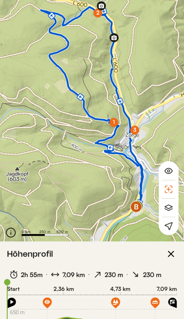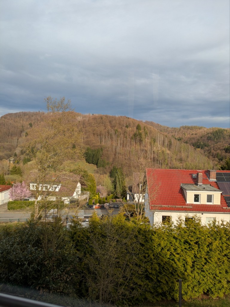 Wieder in der Unterkunft angekommen, wurde erst einmal eine Pause eingelegt, bevor es 2-3 Stunden später wieder zur nächsten Tour ging. Ich habe lange überlegt, ob ich Ava mitnehmen werde zur zweiten Runde, da sie nach der ersten nicht so recht zur Ruhe kam. Am Ende war sie trotzdem dabei, was vielleicht doch zu viel war. Es ging zu einer herausfordernden Runde hoch zum Pferdchen. 230 Höhenmeter. Die gingen auf den ersten 2,5km hoch. Danach ging es dafür entspannt und in niedrigen Prozentzahlen bergab. So kann es gern immer laufen. Oben angekommen, gab es eine kleine Regenhusche, die aber schnell wieder vorbei war. Oben gab es auch einen schönen Ausblick auf die Ortschaft Zorge. Ava hatte ihr bestes gegeben, vielleicht etwas zu viel des Gutem. Im Auto lag sie sofort lang mit ihrem neuen Kumpel Pepe. Autsch, das war wirklich zu viel! Beim Aussteigen dann noch völlig überdreht und wollte anfangen zu zocken. Abends wollte sie nicht einmal mehr raus. Der gemeinsame Abend bestand daraus, die Reste der Vorabende zu vertilgen, damit mal was weniger wird an der Grundversorgung. Es hatte so semi funktioniert. Dafür wurden die Gespräche, sowohl auf Runde, aber auch am letzten Abend immer intensiver, aber auch super witzig und spannend. Man lernt mal wieder Menschen kennen, die neue Verbindungen zeigen.