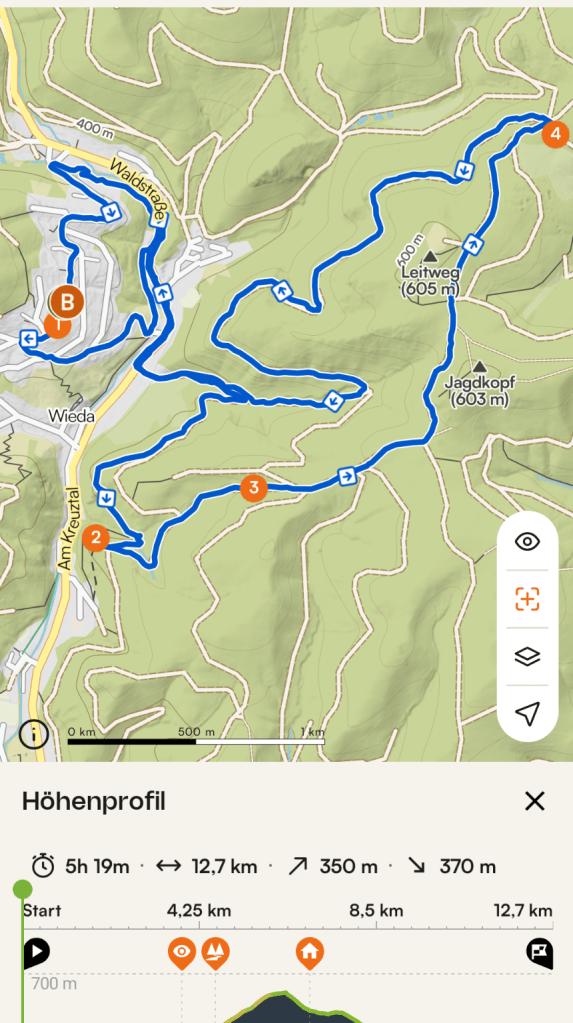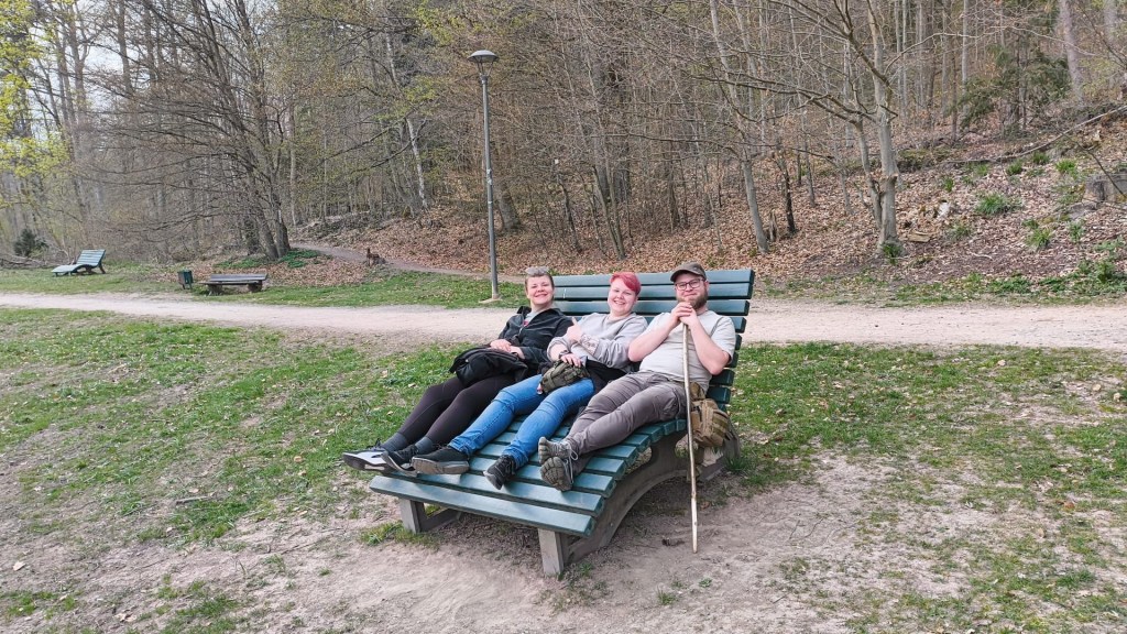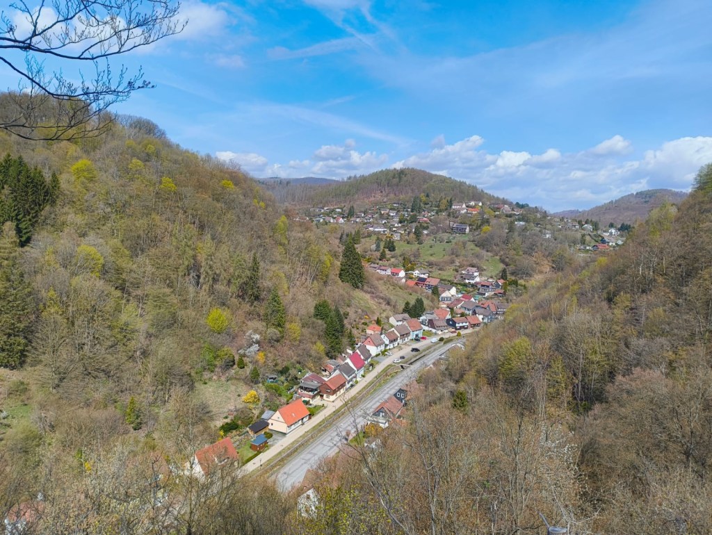 Die erste Nacht war etwas unruhig, aber die Aufregung vom Tag forderte dennoch etwas Schlaf. Am Freitagmorgen gab es gemeinsames Frühstück in ruhiger Runde und 10 Uhr ging es los zur großen Runde. 10km waren geplant, aber durch kleine Bauarbeiten ging es über Umwege auf fast 13km. Durchs Dorf grüßten die Menschen nur allzu freundlich. Wir vermuteten schon, dass da etwas komisches hinter dieser Freundlichkeit steckte. Hoch zur Helenenruhe ging es dann mit Aussichten von oben auf die Ortschaft Wieda. Allein von oben zu schauen, zu sehen, was man an Höhe geschafft hat, ist so ein unbeschreibliches Gefühl. Immer und immer wieder. Egal, wie anstrengend es am Ende war. Wobei diese Runde wirklich recht entspannt war. Die Stempelsammler der Harzer Wandernadel sind auch auf ihre Kosten gekommen. Mich tangiert so etwas tatsächlich gar nicht. Eher einfach der Moment, diese Atmosphäre der Natur zu genießen, die dort doch noch recht erhalten war in diesem Bereich des Harzes.