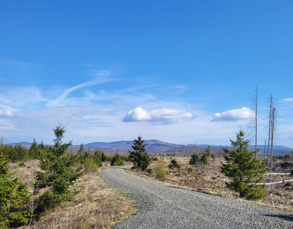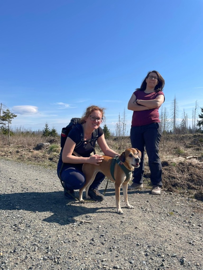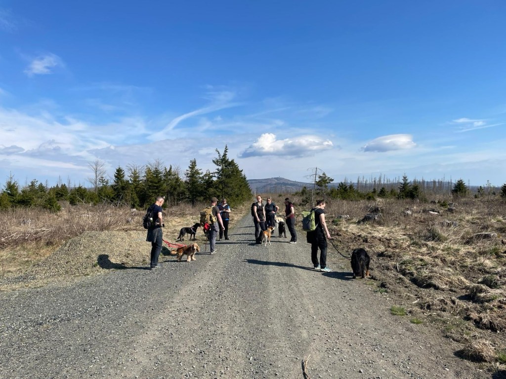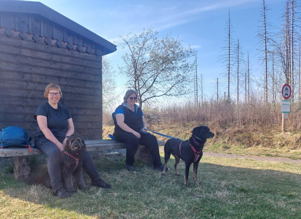 Der Samstag war bereits umgeplant worden, als wir davon erfuhren. Ursprünglich sollten die Runden etwas weiter weg stattfinden, aber wir sind dann doch in der Nähe geblieben. Vormittags 7km zum Brockenblick und nachmittags zum Pferdchen hoch bei Zorge. Runde 1 war dem Brocken nicht sehr fern, aber so sah auch der nicht vorhandene Wald aus. Wahnsinn, aber eben auch hier zu sehen, wie Borkenkäfer und co. gewütet haben. Viel Sonne, wenig Schatten bescherte uns die Runde, sodass zwei Hunde zeitnah umkehren mussten. Aber auch für die anderen war es ziemlich anstrengend in der Sonne. Da war jedes kleinste Bächlein eine willkommene Abkühlung. Höhenmeter wurden in dieser Runde nicht viel gemacht. Auf dem Rückweg gab es hier und da doch noch etwas Schatten. Dort haben wir dann eine kleine Rast gemacht.