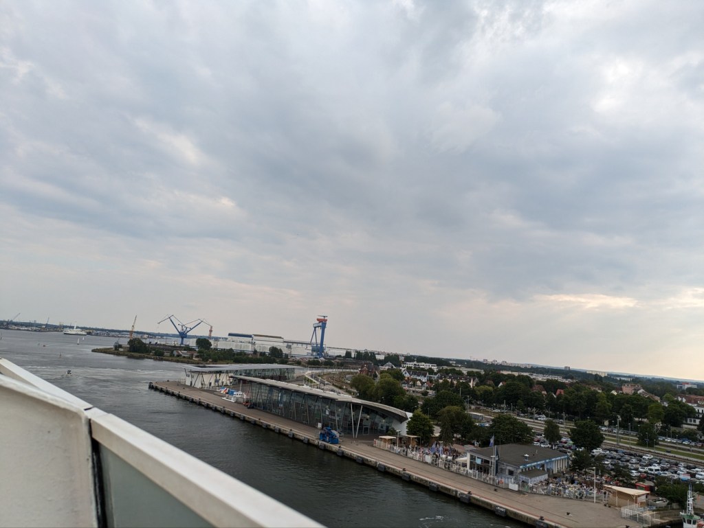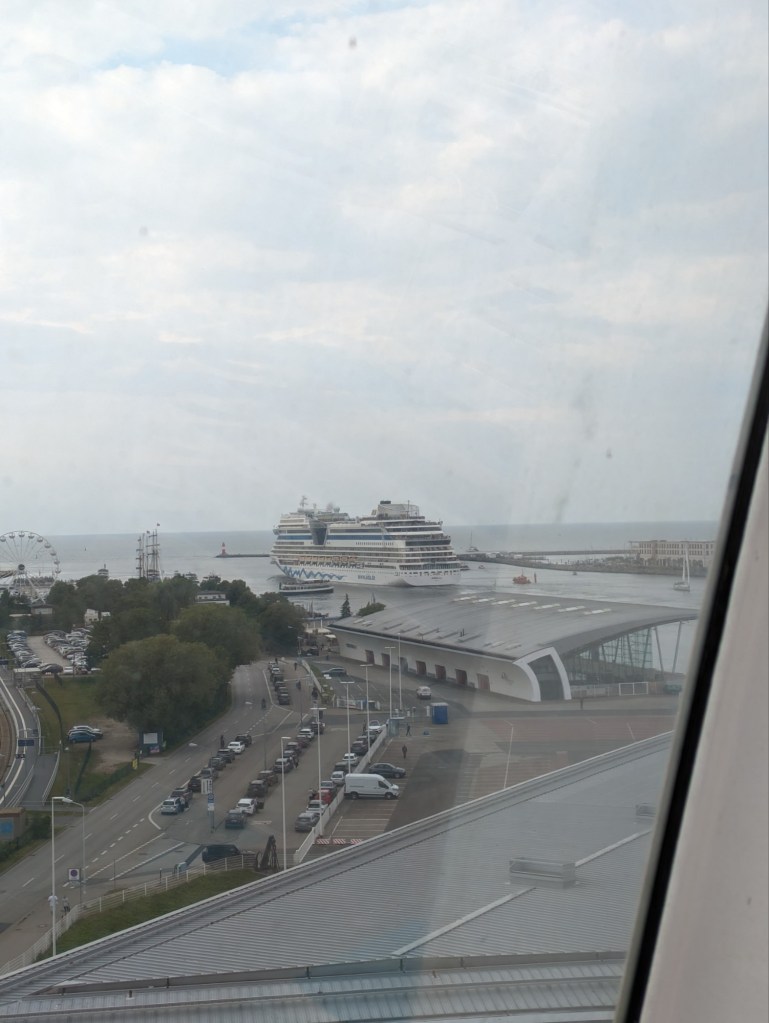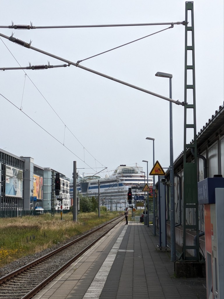 Es ging schnell zur S-Bahn und von der Haltestelle aus zu sehen war bereits die Diva, oder doch die Mar? Wer weiß das schon. Den schweren Koffer konnte ich am Bahnhof Warnemünde dann schon wieder abgeben und ich lief dann zum Passagierkai. Dort war durch die zwei Kreuzfahrtschiffe natürlich ordentlich Betrieb. Aber ich war dieses Mal nicht die Letzte. Oh man, diese Erinnerung bringt mich so sehr zum Lachen. Einfach herrlich.